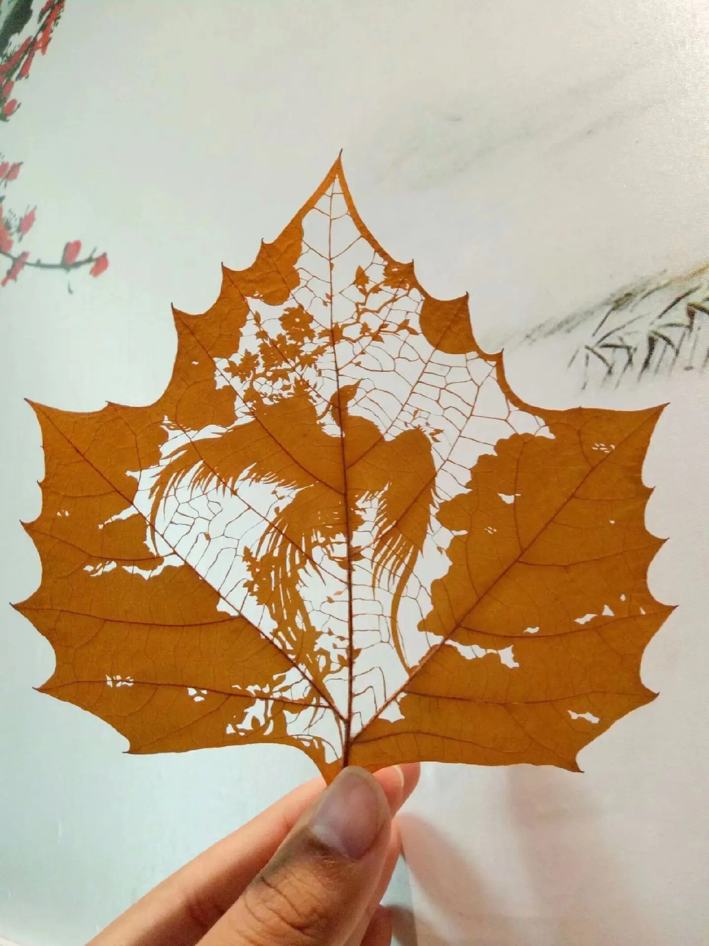 This traditional hand-carved phoenix leaf artwork symbolizes beauty, rebirth, and elegance. It employs precise laser engraving technology to vividly depict the graceful posture of flying birds on real preserved leaves. The natural textures on the leaves are clearly visible, forming the phoenix’s feathers and wings. From the curves of the phoenix to the soft texture of the leaf, every detail perfectly blends nature with art.
